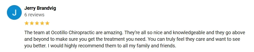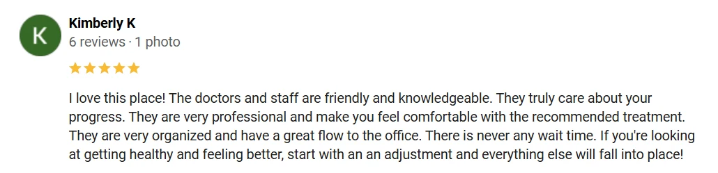 "Unbelievable service and help. I called in with a serious back injury. The same day they worked hard to get me in and took the time to show me what was wrong. It was far more serious then I thought. Their professionalism and customer service made scary news manageable and reassuring. If you are in need of a chiropractor you’d being doing your self a disservice by going anywhere but else."