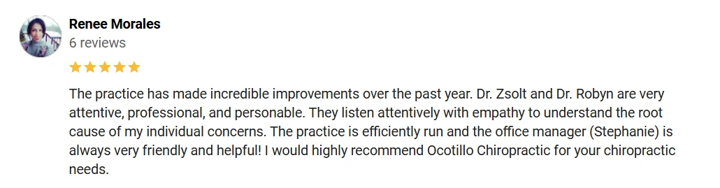 "After seeing Dr. Zsolt for over a year I can confidently say that you are in good hands. While I still have ground to cover, the progress made so far is such that it motivates me to keep going. I came in with a lot of lower back pain which has almost completely cleared up."
